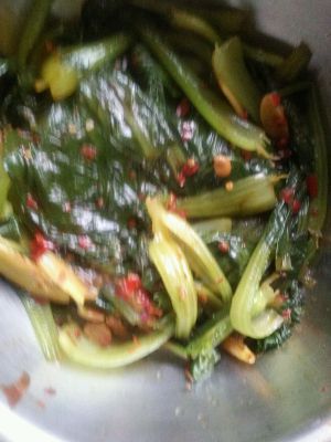 最后再撒点葱蒜末,淋点热油,听到“嗤嗤”的声儿,闻到葱蒜香味,啊,口水下来了~