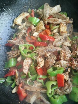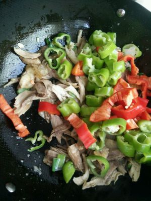 再放入青红椒炒出香味。
