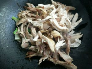 放入鸡丁快速翻炒。