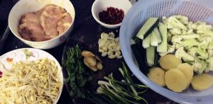 然后煮配菜,先下不易熟的笋片、莴笋、平菇。