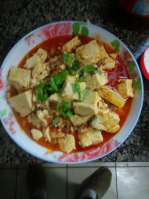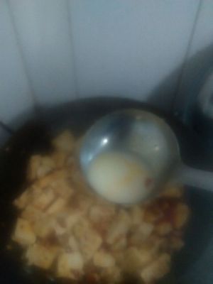 这个忘记拍照了,先放水煮肉片调料翻炒后放豆腐,一直小火