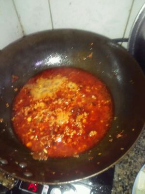 锅里倒油,加入姜末炒香,再加入麻辣酱