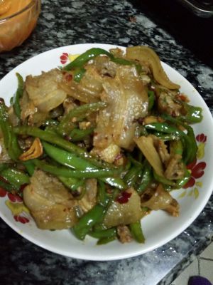 最后放入青红掓炒到断生,根据个人口味加入适量盐起锅