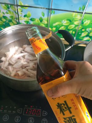 半锅冷水加料酒少许、姜几片(祛腥味)、加入鸡爪,锅开后中火10分钟。如果给老人吃可以多煮一会。