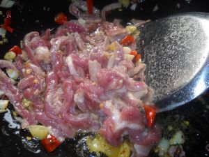 放入肉丝翻炒均匀