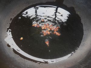 锅里倒油烧热,油比平时多一些