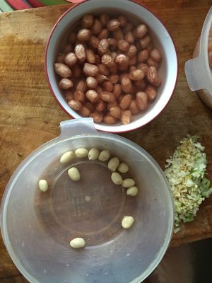 花生米可以用自己炒制也可以买现成的,我是用油炸过的,然后去皮,待用