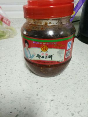 热锅倒油加入豆瓣酱,加水炖,把肉到进去