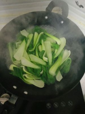 另起炒锅,豆芽、金针菇混合炒熟,盛放在盆底。
