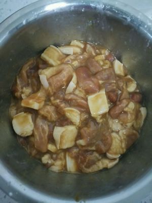 将肉用酱油。盐,鸡蛋清,淀粉腌制10-15分钟