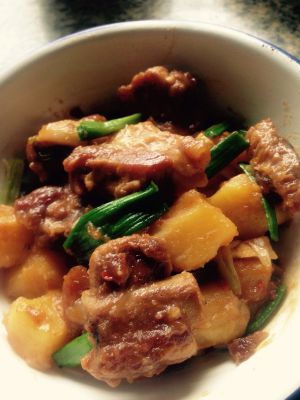 差不多后加适量清水,把排骨淹着就行,锅盖盖上中火煮个20分钟,然后倒入土豆,再盖锅盖煮个十分钟,就差不多了。根据个人口味,如果喜欢吃更软一点的,就多煮一会儿 排骨同理 起锅撒上葱花
