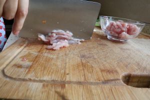 肉丝用料酒、胡椒粉、姜粉、玉米胚芽油、盐腌制几分钟
