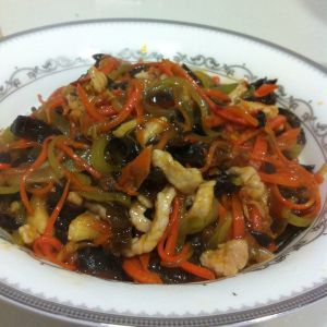 猪腿肉 木耳和胡萝卜切丝,泡椒和姜蒜切末 重点在于滋汁: 白糖10g 香醋(保宁醋/镇江香醋)10g 老抽2g 生抽3g 盐1g 清汤10g 淀粉一勺调匀。如果有德阳红酱油更好,直接用5g德阳红酱油代替老抽和生抽