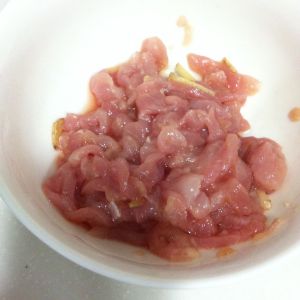 肉用水淀粉和1-2g盐拌匀,拌好后加入生清油调匀,这个办法可以锁住水份保持嫩度,也可以适当减少肉丝翻炒的时候粘连的程度。淀粉最好选择红薯淀粉