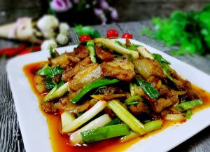 炒熟后装盘,一盘美味的苕皮回锅肉就做好了,超级好吃