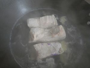 五花肉洗净,冷水下锅,煮开后洒一勺料酒,几片姜片,大约煮一刻钟左右,用筷子插进去无血水捞出晾凉。
