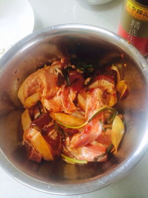 将步骤1内所有的配料放入盆中跟肉一起腌至半小时