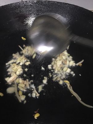 锅里热油下入姜蒜末