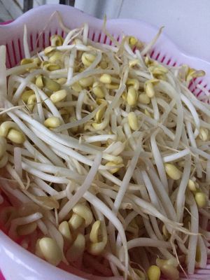 豆芽煮熟(加少许盐),铺在碗底。