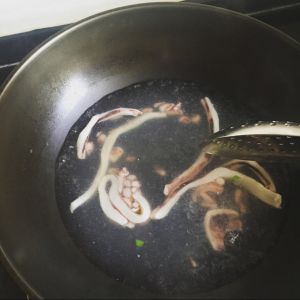 鲜鱿鱼切条过沸水。