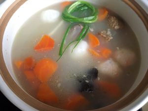 煮制上汽之后 转小火煮半小时 加入适量的盐即可 如果是用电饭煲煮汤的话 按煲汤按键 最后十分钟加入盐就好了哦