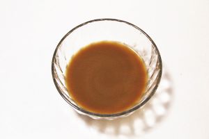 酱油,耗油,半茶匙盐,蒜末,葱姜末加一大勺水,半勺淀粉,一小勺油,熬熟,把炸好的茄子下锅翻炒均匀挂糊出锅装盘。