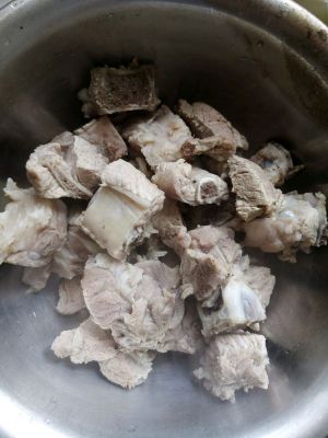 买来的排骨(或者脊骨)洗净,温水下锅,水开后撇去血沫。(水中放入几片姜,可以去除排骨的血腥味。)莲藕切块