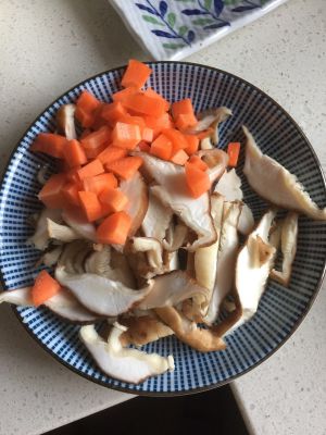葱切末,姜切丝,香菇泡发后切薄片!胡萝卜切小丁(不喜欢吃的可以不放)