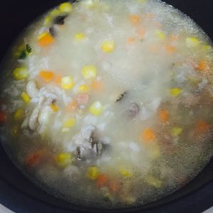 鸡汤放米煮粥