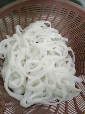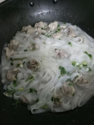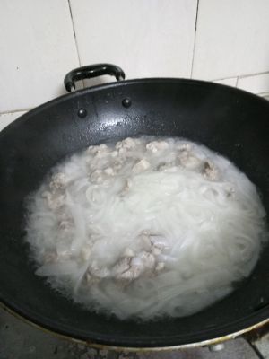 倒入河粉,水沸后煮一分半钟。时间不用太久,否则容易烂。