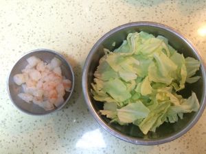 把虾仁切丁、手撕圆白菜