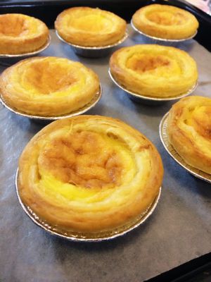 外表酥脆,奶香味儿十足,香嫩幼滑的旺仔脆皮蛋挞就做好了!请君品尝。