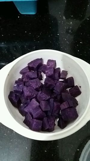 紫薯切丁蒸熟……蒸十分钟左右就好