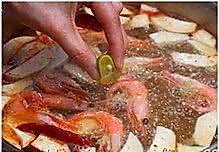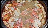 加入 香茅 良姜 柠檬叶 干辣椒 冬阴功酱 清水3碗(大约2斤左右) 加入番茄汁熬煮