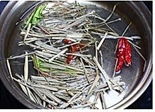 锅内做水,将干香茅柠檬叶南姜干辣椒倒入锅中同煮。