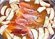 杏鲍菇洗净切片,鲜虾洗净剪掉须子。