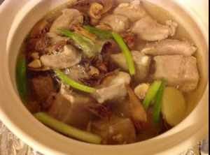 干松茸泡水洗净、控水,备用。排骨洗净、飞水、过冷河,备用。
