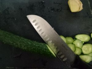 西葫芦切薄片,木耳一小把泡发,鸡蛋打散,西红柿切块