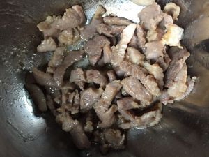 6.加入里脊肉丝炒制,加入2滴老抽。