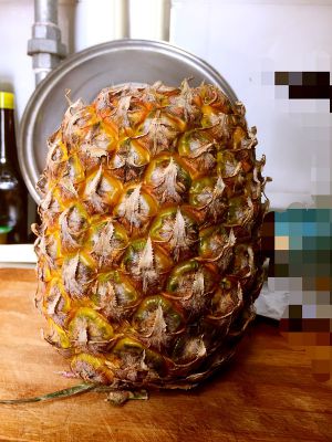 油温不是很高时将香肠、腰果放入煸炒,腰果变金黄,放入其他的食材和饭,继续煸炒,喜欢饭粒不要太干可以加少量菠萝汁(挖菠萝时收集)