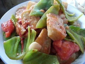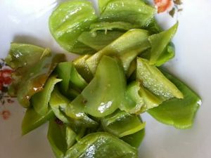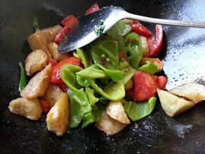 再倒入青椒,加少许盐,翻炒即可出锅。