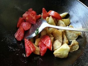 最后倒入茄子''放入蒜末'''出锅''(蒜末一定要放完茄子最后放蒜'''才有味)