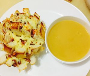 一碗红薯小米糊搭配烤馒头,真的很清爽哦!