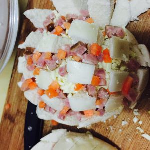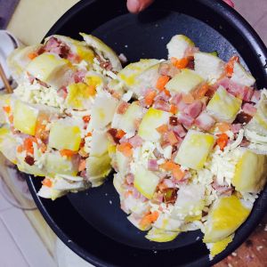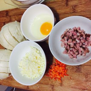奶酪碎 烤肠 胡萝卜 鸡蛋材料准备好