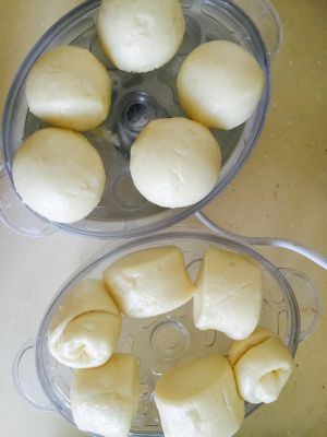 放入锅中之前水烧45度,不烫手那种程度,把馒头放入锅中进行二次发酵,观察发酵程度用手轻轻按一下馒头不回缩就是发酵成功了,开火蒸13分钟,蒸完过五分钟再揭盖子,以免回缩。