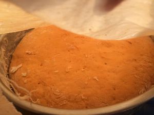 当时没留图,面团揉差不多就放起来,等待发酵2个小时左右,面变成面团两倍大,然后看一下,我差不多发酵了3个小时左右。