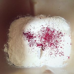 将除了蔓越莓干所有的材料放入面包机内,和面10分钟。