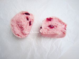 红曲粉兑水或红心火龙果汁,菠菜叶在开水锅中抄熟捞出,加点水用打汁机打成汁,加面发酵粉和二种汁和成面团,另和一块白面团放置一旁醒发至面团为蜂窝状。因为要做花,所以面要比平时发的面和的硬一些,好成型。
