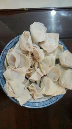 水开下锅,新鲜的抄手煮不到多久,浮在水面再煮一两分钟即可出锅!先舀一勺汤把碗里的调料混合,再捞入抄手即可开动了!