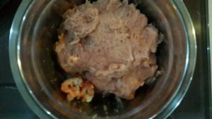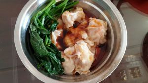 白菜 葱 大蒜 白蘑菇 trader joe羊腿肉机器打碎 白蘑菇充当油肉 羊腿上脂肪都剪刀剪干净 撒上孜然粉和盐